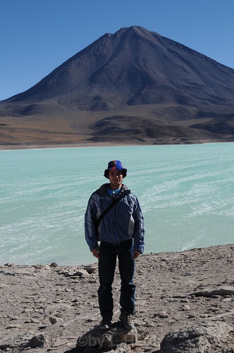 Im Hintergrund der Vulkan